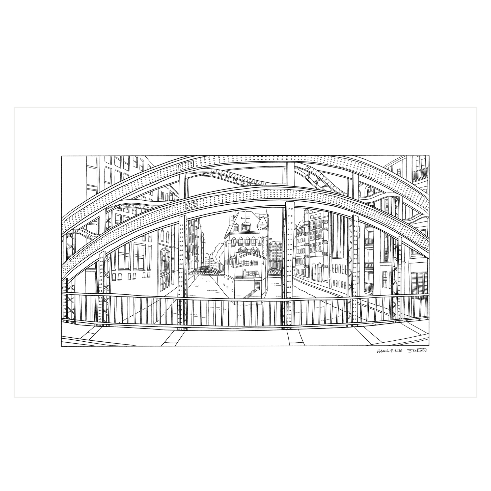 This illustration of the Speicherstadt represents quintessential Hamburg to me. Crazily, I only found this spot after having a class excursion this way, but I loved it so much I couldn't wait to draw it.